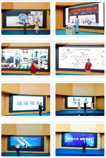 比赛分为小学生组、初中生组、教师组和校长组四个组别,各参赛选手紧扣 “科技之光 创见未来” 主题,或个人独诵、或团队合读,用真挚的情感、生动的表达勾勒出东莞科创教育的鲜活图景。选手们将 PPT、高清视频与朗读内容深度融合,实现了听觉与视觉的完美联动。小学组实验小学同学带来的《以科技之我,筑强国未来》,以校园科创赛事的视频为背景,将同学斩获全国车辆模型大赛奖项的经历娓娓道来。福隆小学同学在《探索之光,照亮科技之路》的朗读中,配合科普剧大赛的舞台视频,将 AI 机器人 “小智” 的探索故事具象化。校长组实验小学高飞校长的《一群追星星的人》,更是以学校天文课程的实拍视频为衬,将师生探索星空的点滴展现在观众眼前,深邃的星空画面与深情的讲述交融。教师组石岗小学老师的《在失败的土壤里,发出科技的芽》、石排中心小学老师的《师者如鼎,科创如炬》等作品,也都凭借精湛的朗诵艺术、内容与视频背景的无缝衔接,为朗读增添了丰富的层次感,赢得评委与观众的一致好评。